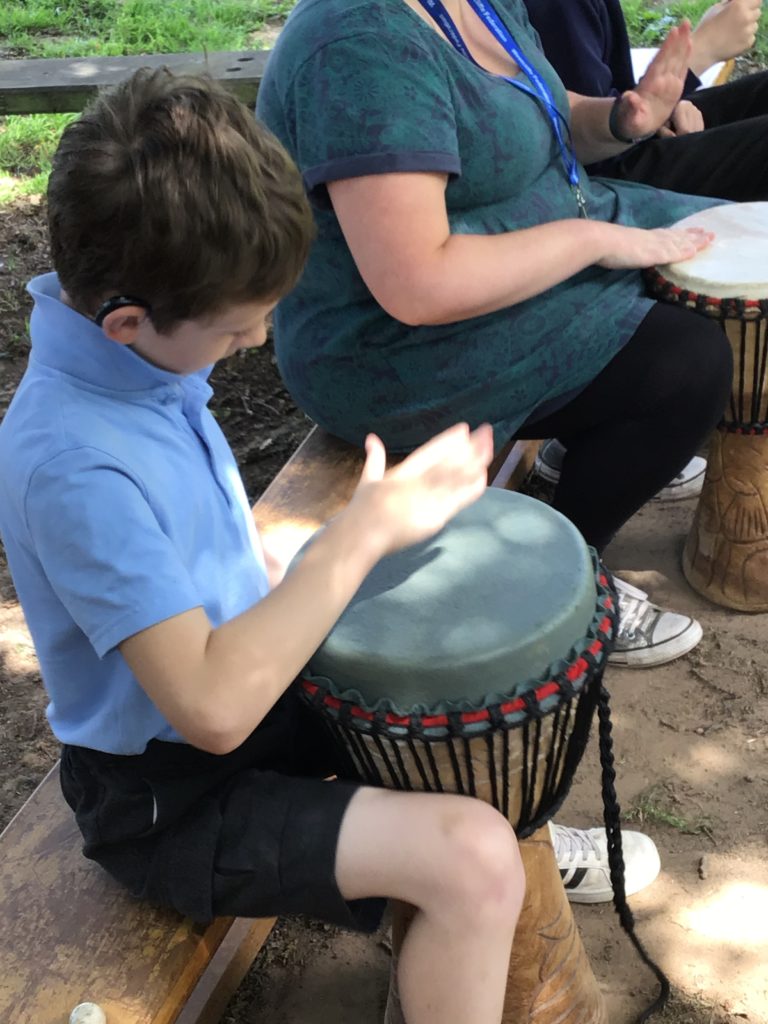 The teaching of music in our school follows the aims of the National Curriculum. Our pupils experience music by way of practical engagement in performing, composing and appraising. Children are taught to internalise music to develop aural memory and the emphasis is placed on sound before symbol. Singing and work with rhythm play an important part in the development of musical skills. All children have opportunities to sing within lessons, in weekly singing lessons lead by our expert coach, Holly form Phoenix Academy Dance and Drama. They also have the opportunity to learn how to play instruments including the glockenspiel and the ocarina.